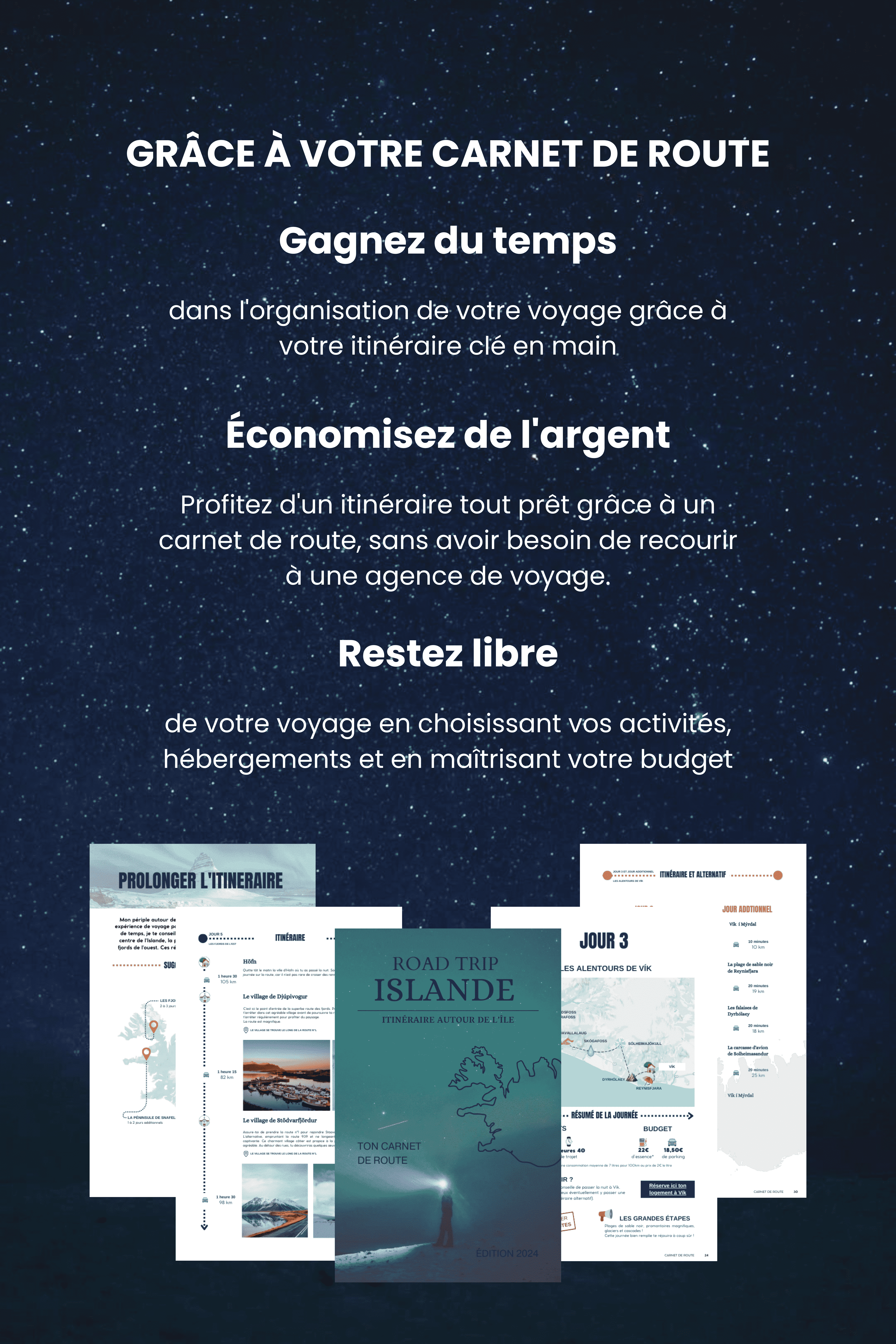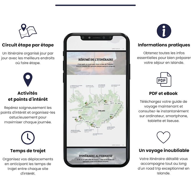 Lorsque j'ai réservé mes billets pour mon premier voyage en Islande, cette aventure semblait un peu folle. C'était comme un saut vers une contrée lointaine, sauvage et mystérieuse. Pourtant, la terre de glace et de feu n'est qu'à 3 heures et demie en avion de Paris. Une fois sur place, les paysages variés m'ont émerveillé, créant l'impression d'être sur une autre planète. Si l'Islande vous fait rêver, n'hésitez pas. Depuis mon premier itinéraire, l'île est devenue mon coup de cœur, et j'y suis retournée deux fois. Dans ce eBook, retrouvez conseils, astuces et itinéraires pour découvrir les secrets de l'Islande, adaptés à votre disponibilité.